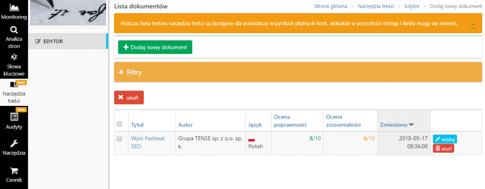 Wielkie dzięki dla całej ekipy – Anny, Mileny i Wojciecha za możliwość porozmawiania i demonstracji nowych funkcjonalności, czyli audytów SEO oraz edytora treści, z którego korzystaliśmy przy okazji pisania tego wpisu.
