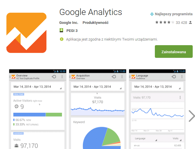 Rys. 1. Oficjalna aplikacja Google Analytics dostępna jest w Sklepie Play oraz iTunes