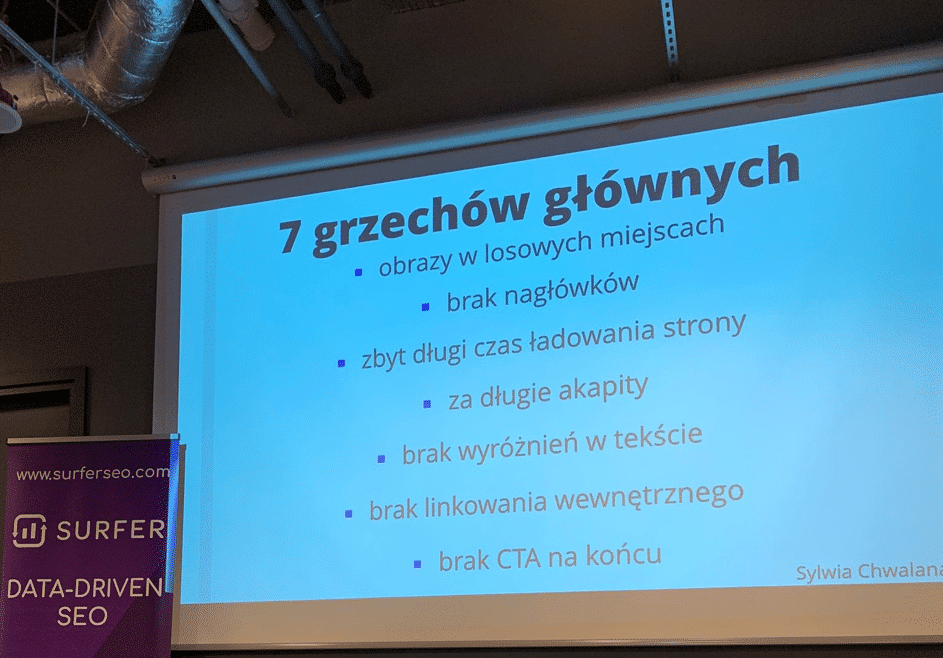 Pierwszy z etapów zeszłotygodniowego spotkania obejmował kilkugodzinne warsztaty praktyczne, w ramach których uczestnicy w mocno ograniczonej grupie osób pracowali nad optymalizacją witryn z wykorzystaniem narzędzia Surfer SEO. Niestety nam nie udało się uczestniczyć w tej części, ale na afterparty chodziły słuchy, że były to warsztaty na najwyższym poziomie merytoryki, owocujące ogromną wymianą wiedzy pomiędzy jej uczestnikami.