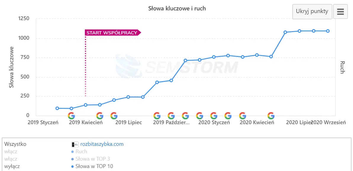 Dobierając słowa kluczowe w procesie pozycjonowania strony wzięliśmy pod uwagę sugestie Klienta. To on najlepiej wiedział, na jakie wyrażenia chciał zajmować wysokie pozycje.